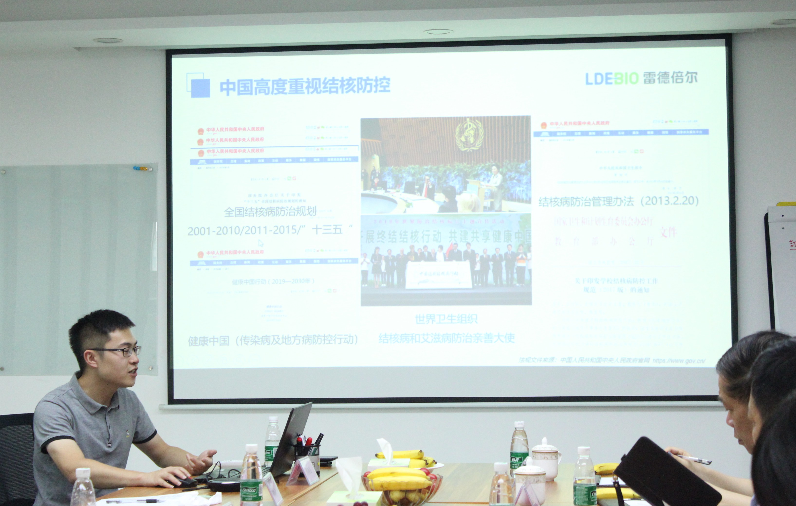 首先,樓建榮董事長提出,中國結核病目前防控形勢嚴峻,大規模結核感染篩查刻不容緩。雷德倍爾作為國家高新技術和廣東省領軍人才企業,公司在自身發展的同時,也不忘回饋社會,為了積極響應國家政策,雷德倍爾參與了國家重大專項以及創新創業項目,同時也提供了專業的人才和技術支持,來配合疾控、學校、部隊和監獄等單位進行結核篩查,實現早發現早治療的目標。