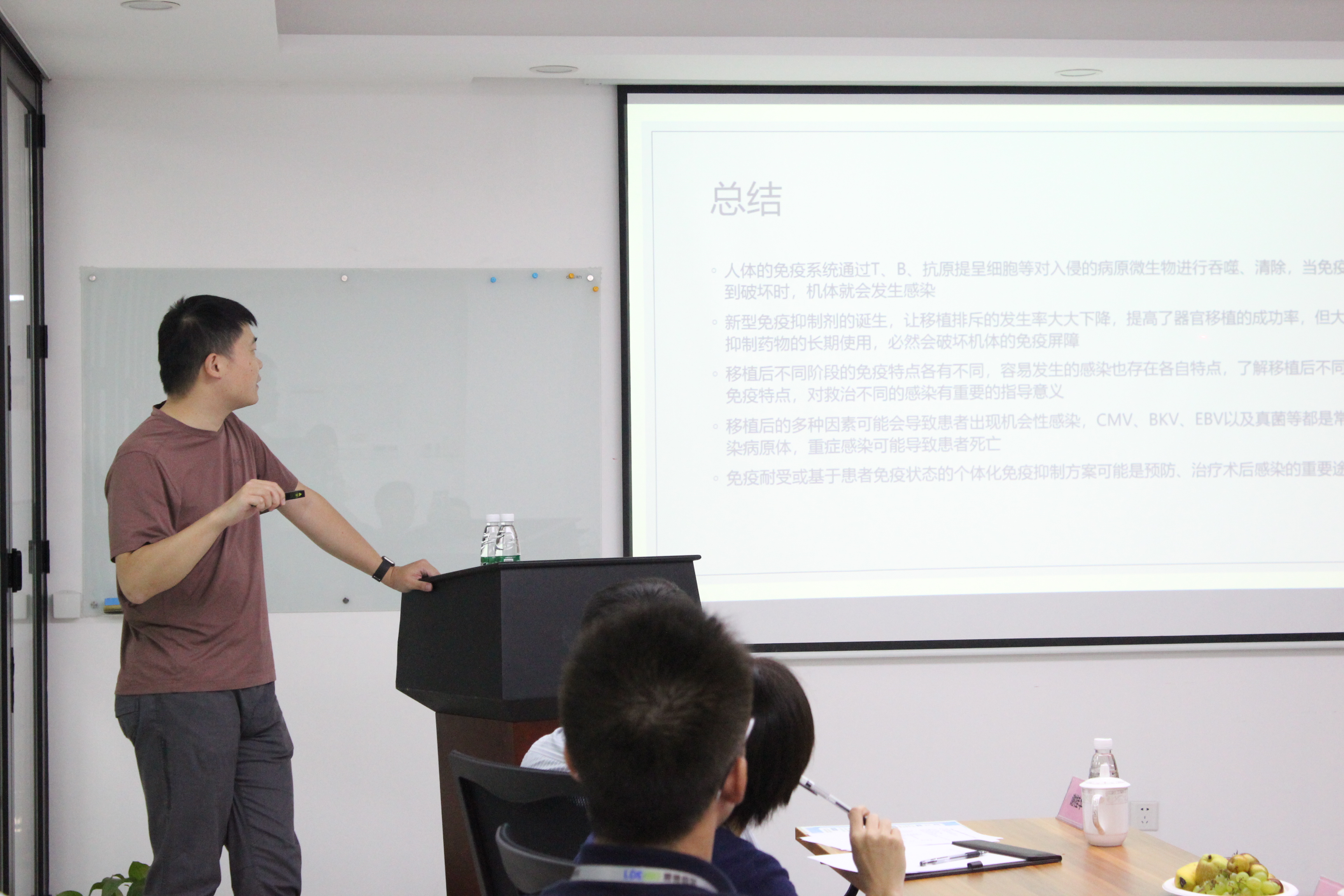 會(huì)議繼續(xù)進(jìn)行,首先由李醫(yī)生介紹移植與感染的臨床現(xiàn)狀,從免疫與感染的關(guān)系、移植術(shù)后感染的不同病原體類型、及臨床常見的診療方法分別闡述。了解移植后不同階段的免疫特點(diǎn),對(duì)救治不同的感染有重要的指導(dǎo)意義,免疫耐受或基于患者免疫狀態(tài)的個(gè)體化免疫抑制方案可能是預(yù)防、治療術(shù)后感染的重要途徑。