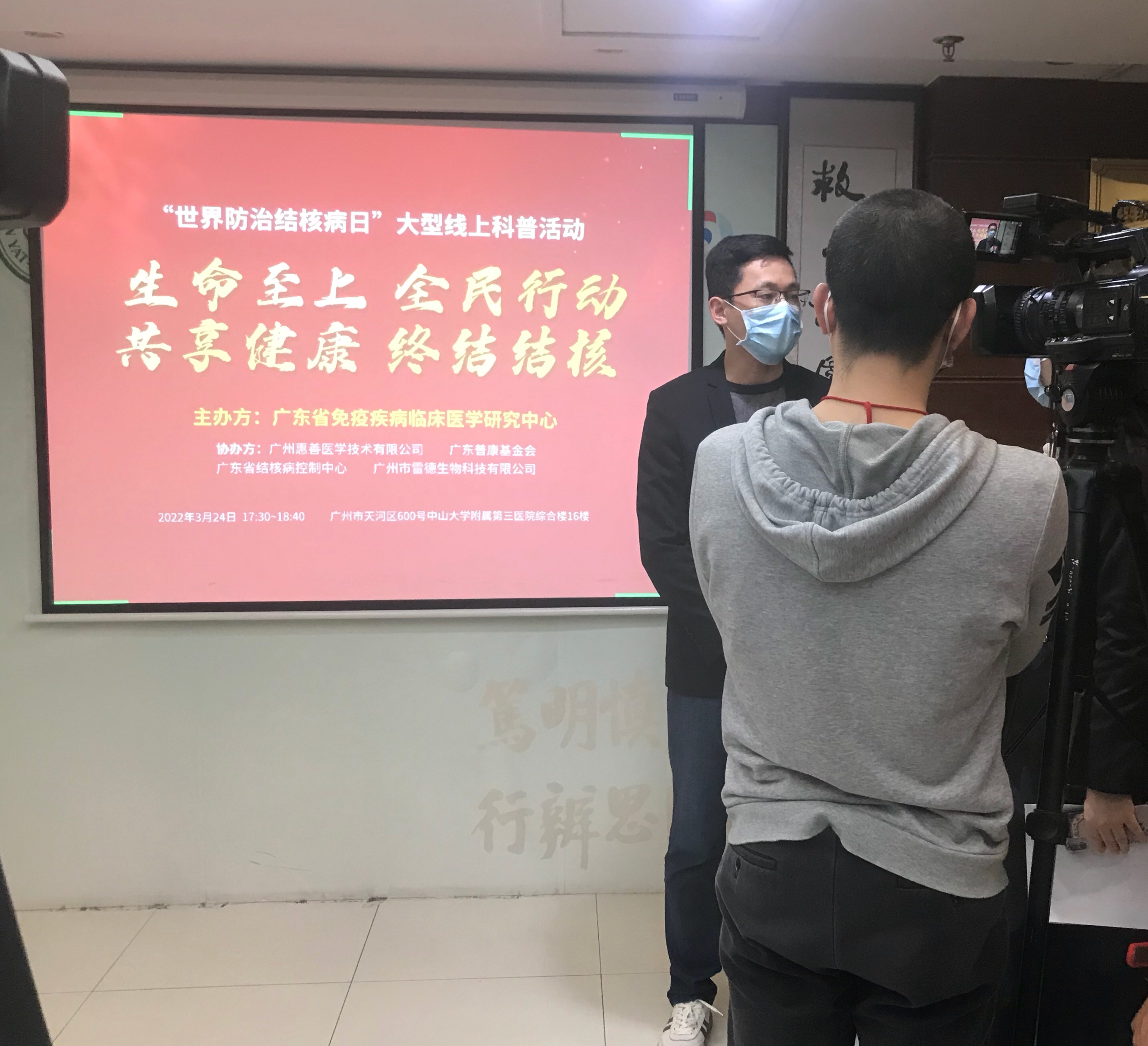 3月24日是第27個“世界防治結核病日”,今年的主題是“生命至上 全面行動 共享健康 終結結核”。為促進公眾對結核病感染危害及其檢測手段的了解,引導公眾做好疫情期間結核病的防控工作,2022年3月24日18:00-20:00,廣東省免疫疾病臨床醫學研究中心聯合廣東省結核病控制中心和廣州市雷德生物科技有限公司開展大型線上結核防控知識科普和結核篩查活動。