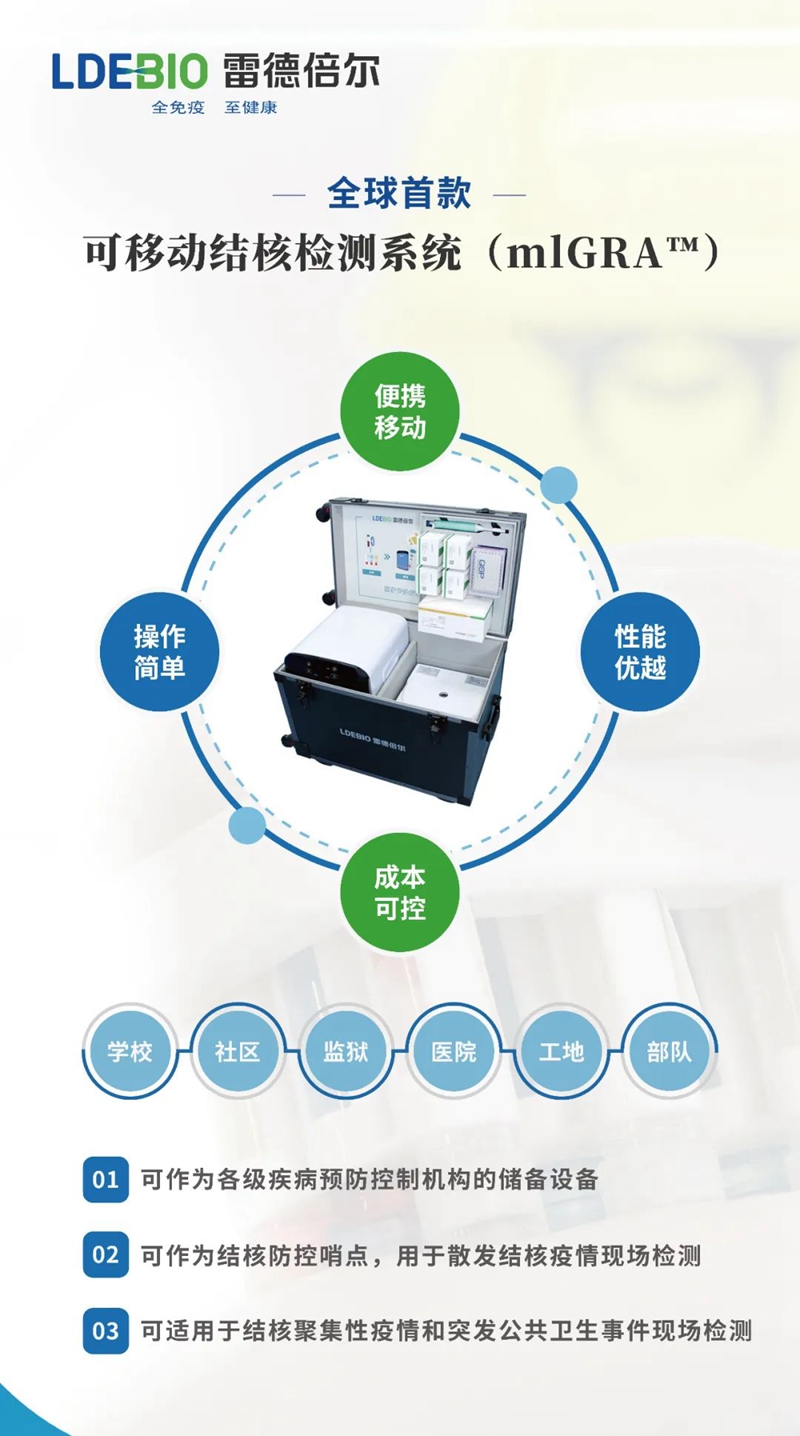 雷德倍爾可移動結核檢測系統mIGRA??,外觀為一個小小的移動箱,內里乾坤豐富,內含孵育器、熒光免疫分析儀、移液器、離心機、γ 干擾素(IFN-γ)檢測試劑盒、細胞刺激試劑盒等結核感染檢測所需的所有設備物料,具備可移動、高性能、易操作等特點,即拎即走,即到即測,特別適合基層和偏遠海島村民檢測。