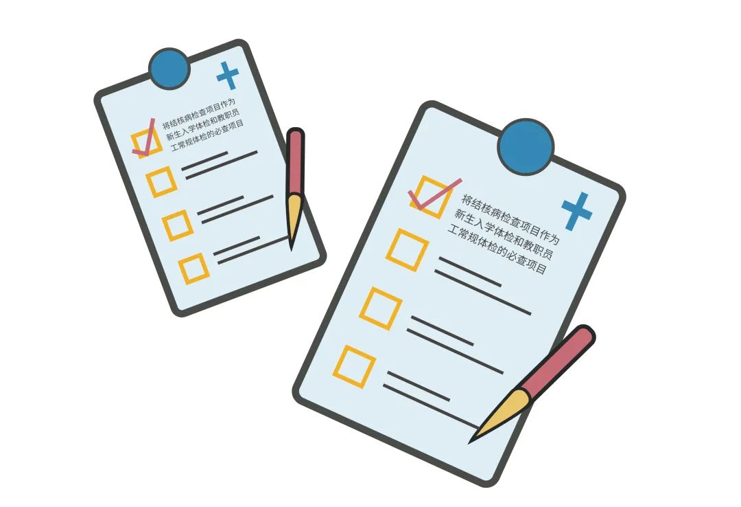 要選擇有資質且具備開展結核分枝桿菌感染檢測和胸部X光片檢查能力的機構。結核分枝桿菌感染檢測技術包括結核菌素皮膚試驗(Tuberculin Skin Test, TST)和γ-干擾素釋放試驗(Interferon-Gamma Release Assay,IGRA)等,鼓勵探索適宜新技術和新方法,科學開展論證,提升檢測效果。在完成時限上,新生體檢原則上要在入校前完成,最晚不超過開學后一個月;新入職員工在入職前完成;在職員工每年開展一次常規(guī)體檢。