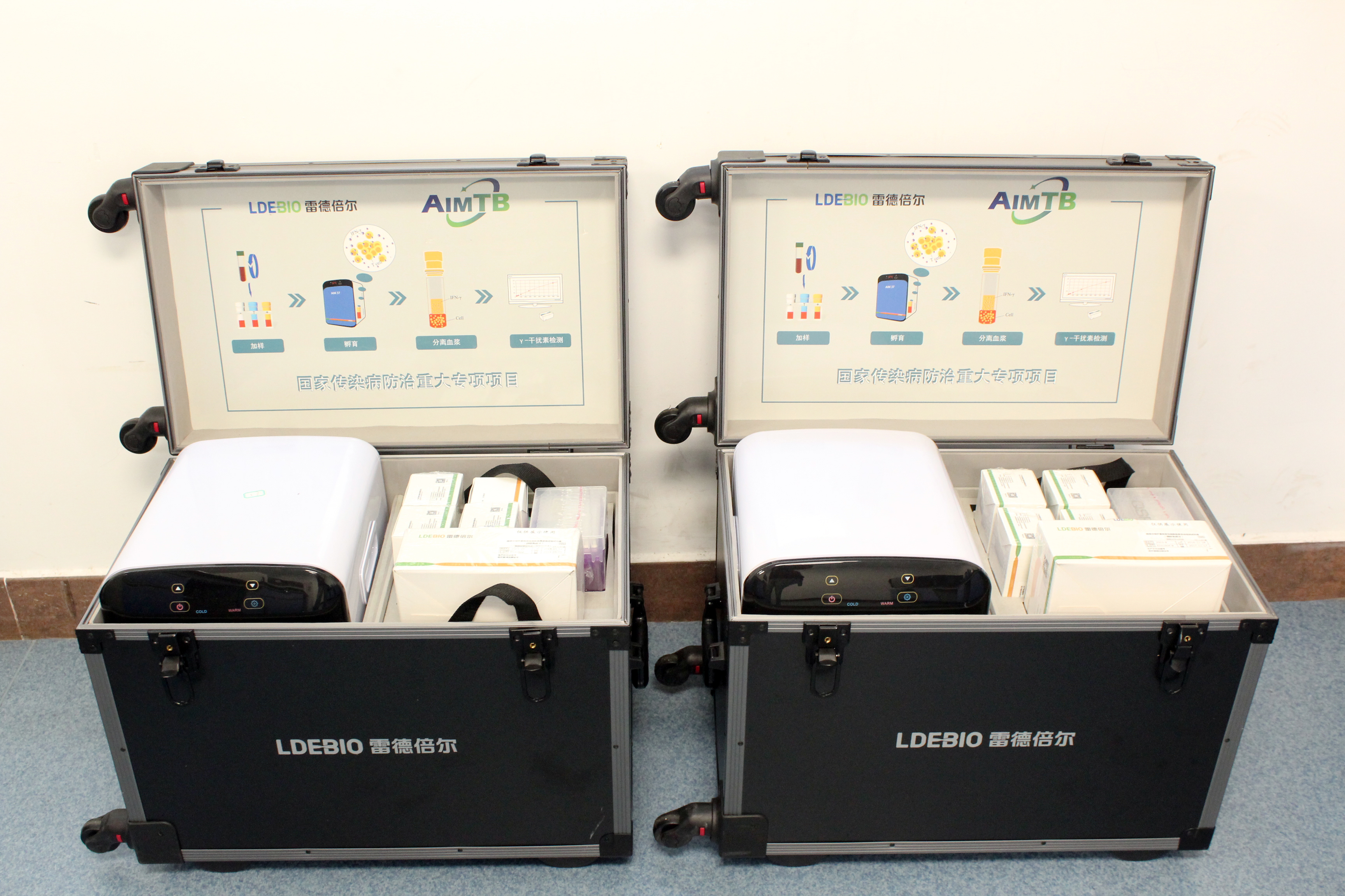 基于全免疫體外診斷核心技術(shù)平臺,雷德倍爾創(chuàng)新研發(fā)的AIMTB結(jié)核感染檢測系統(tǒng)已經(jīng)于2019年獲得國家藥監(jiān)局注冊批準(zhǔn)上市。AIMTB基于IGRA技術(shù),實驗使用的結(jié)核分枝桿菌基因中含有特異性的RD1區(qū)域的ESAT-6和CFP-10兩個強(qiáng)免疫原性抗原。ESAT-6能避免所有BCG菌株及絕大部分環(huán)境分枝桿菌的干擾,CFP-10可強(qiáng)烈誘導(dǎo)50%-90%的結(jié)核病患者外周血單核細(xì)胞產(chǎn)生增殖反應(yīng)并分泌大量的IFN-γ,檢測結(jié)果具有相當(dāng)高的敏感性和特異性。